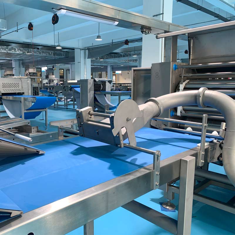 Para satisfacer la creciente demanda de productos laminados de alta calidad, como la masa danesa y los croissants, ZLINE ha desarrollado una línea de laminación y formado totalmente automatizada, equipada con un sistema de almacenamiento en frío de precisión. Esta línea de producción integra el procesamiento de la masa, la laminación multicapa, el moldeado y el almacenamiento en frío en un flujo continuo.