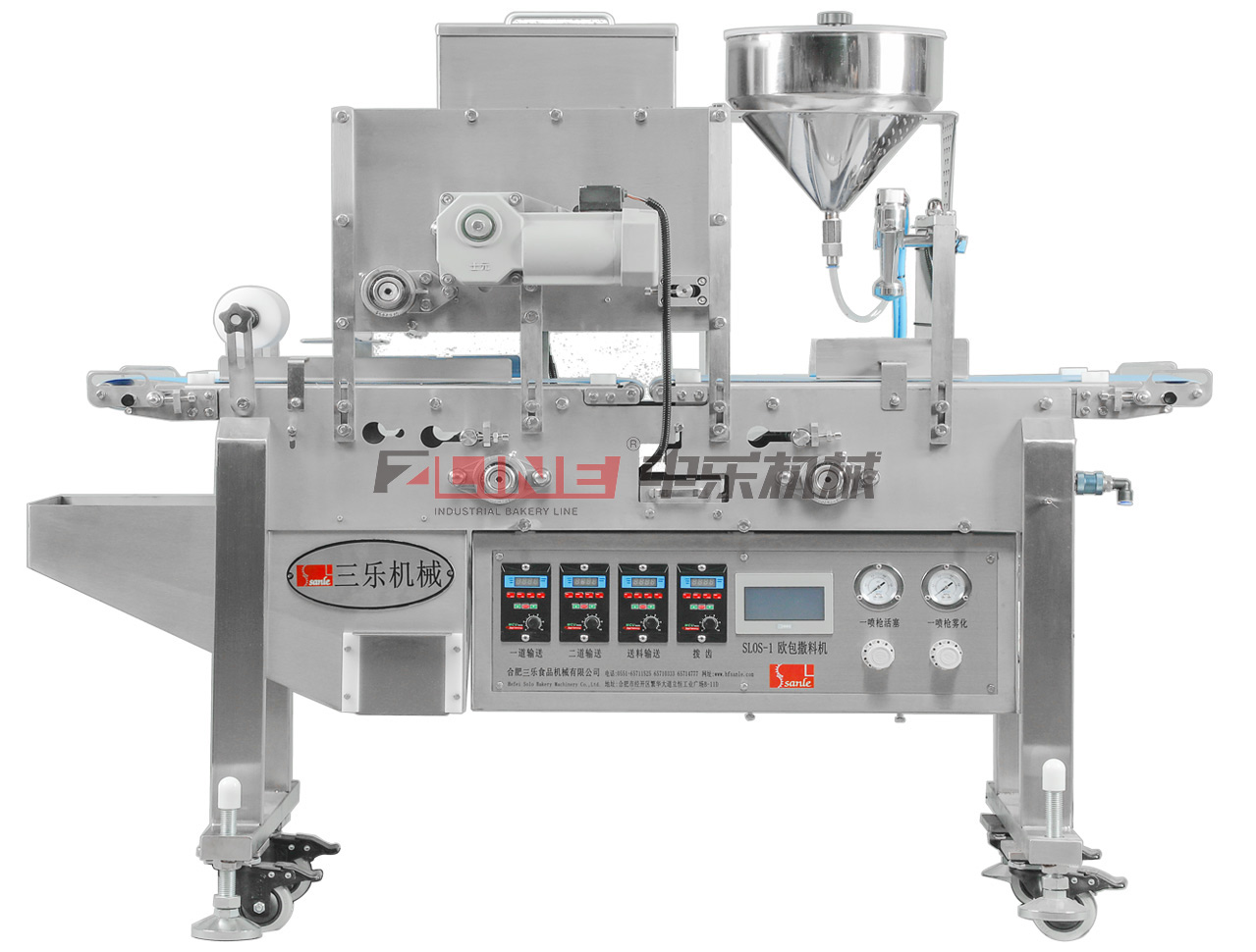 La serie SLOS permite espolvorear nueces, avena, sésamo y otros materiales. En lugar de espolvorear manualmente, se integra con la línea de producción para lograr una producción completa y mejorar la higiene en todo el taller.