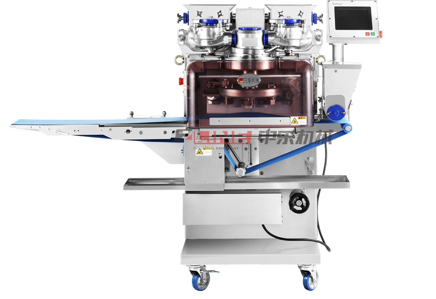 Esta máquina incrustadora multifuncional se utiliza ampliamente en papas, pastel de esposa, pastel de luna, pastel de calabaza, fruta de cristal, bolas de pescado, píldoras Fuzhou y otros productos con relleno simple o múltiple. Alimentación uniforme y estable mediante cabrestante de tornillo y bomba de aspas. Ajuste de frecuencia variable del tamaño de alimentación, adecuado para diversos tipos de relleno de piel, diversas proporciones de relleno y diversas especificaciones del producto.