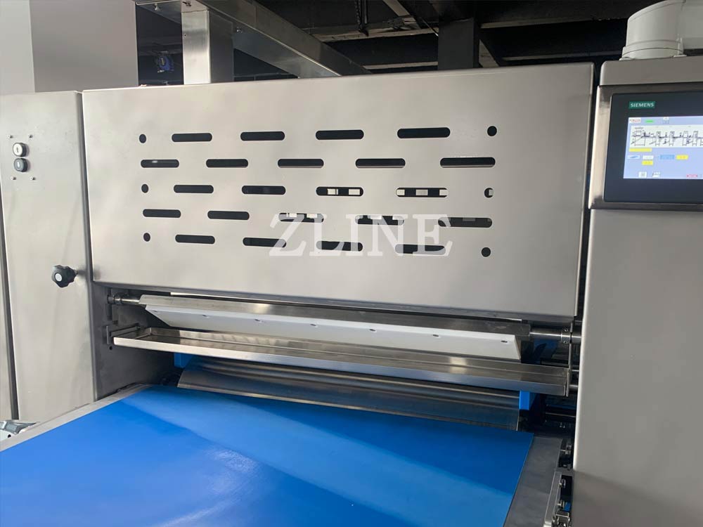 Amasadora → Extrusora de banda de masa→ Satélite → Laminadora cruzada → Calibrador1→ Calibrador2 → cortador rotatorio → Devolución de masa raspada→ Oferta de túnel→ horno de túnel→ Coller → Máquina empaquetadora